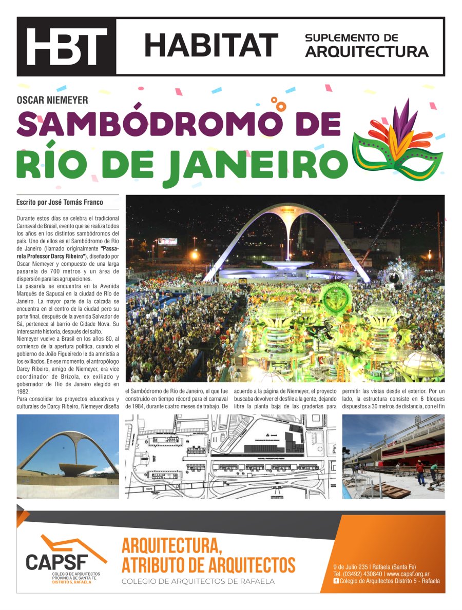 Para consolidar los proyectos educativos y culturales de Darcy Ribeiro, Niemeyer diseña el Sambódromo de Río de Janeiro, el que fue construido en tiempo récord para el carnaval de 1984, durante cuatro meses de trabajo. De acuerdo a la página de Niemeyer, el proyecto buscaba devolver el desfile a la gente, dejando libre la planta baja de las graderías para permitir las vistas desde el exterior. Por un lado, la estructura consiste en 6 bloques dispuestos a 30 metros de distancia, con el fin de generar plazas populares. Por el otro, un gran bloque de cabañas que sigue hasta el final del edificio de Brahma (ya demolido).