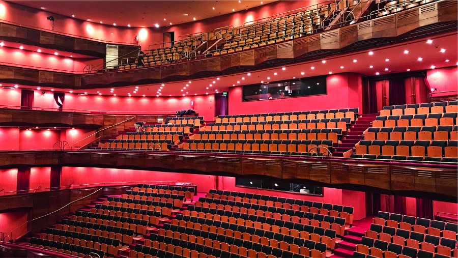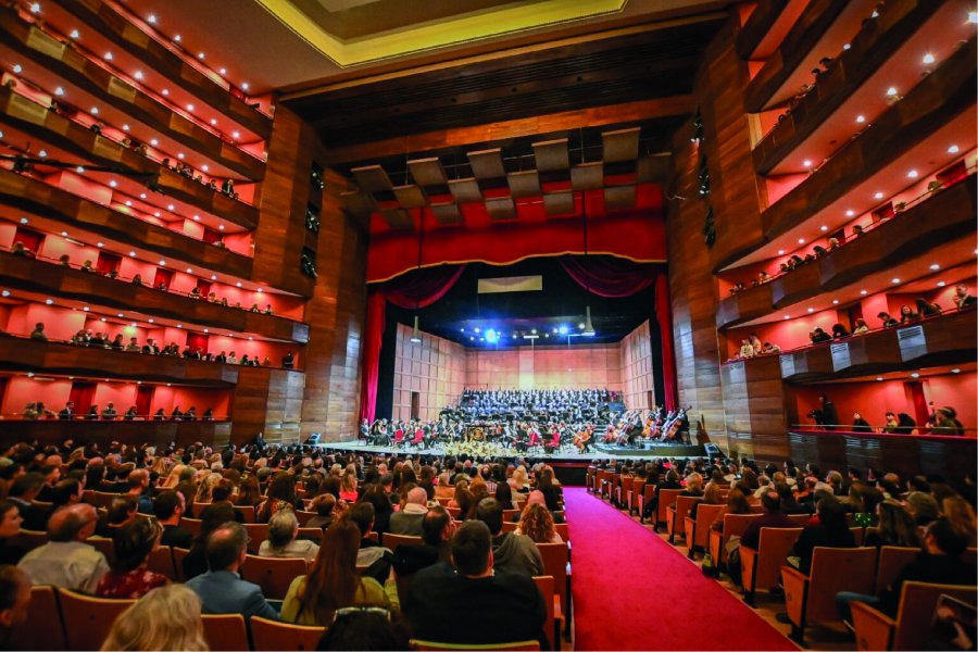 Área musical: Sala Alberto Ginastera, Sala Astor Piazzolla, escenarios, salas de ensayos, camarines, talleres de producción (escenografía, utilería, vestuario, etcétera). Área de teatro de prosa: sala de teatro de prosa, con capacidad para 755 espectadores y adaptable tanto a puestas clásicas como modernas, escenario, camarines y talleres de producción. Este área será ocupada por la Comedia de la Provincia de Buenos Aires. Área pública: plaza de acceso, foyers, salones públicos, salón de exposiciones, terraza mirador, bares, cafeterias, y restaurante con capacidad para 300 personas. Área técnico-electrónica: las tres salas y el edificio en su conjunto con un cerebro electrónico que coordinará el uso de las técnicas más avanzadas. Se dispondrá de circuito abierto y cerrado de televisión, radio AM y FM de uso abierto y cerrado, elementos para la utilización de música electrónica y efectos especiales en los espectáculos. Área administrativa: despachos de los directores de las distintas salas, y oficinas administrativas. Área cultural: secretaría de cultura, biblioteca especializada, discoteca, hemeroteca, cintoteca. Área de servicios generales: mayordomía y maestranza, servicio médico, mantenimiento e intendencia, instalaciones, cabinas de teléfonos públicos y estacionamiento cubierto con capacidad para 250 automóviles.