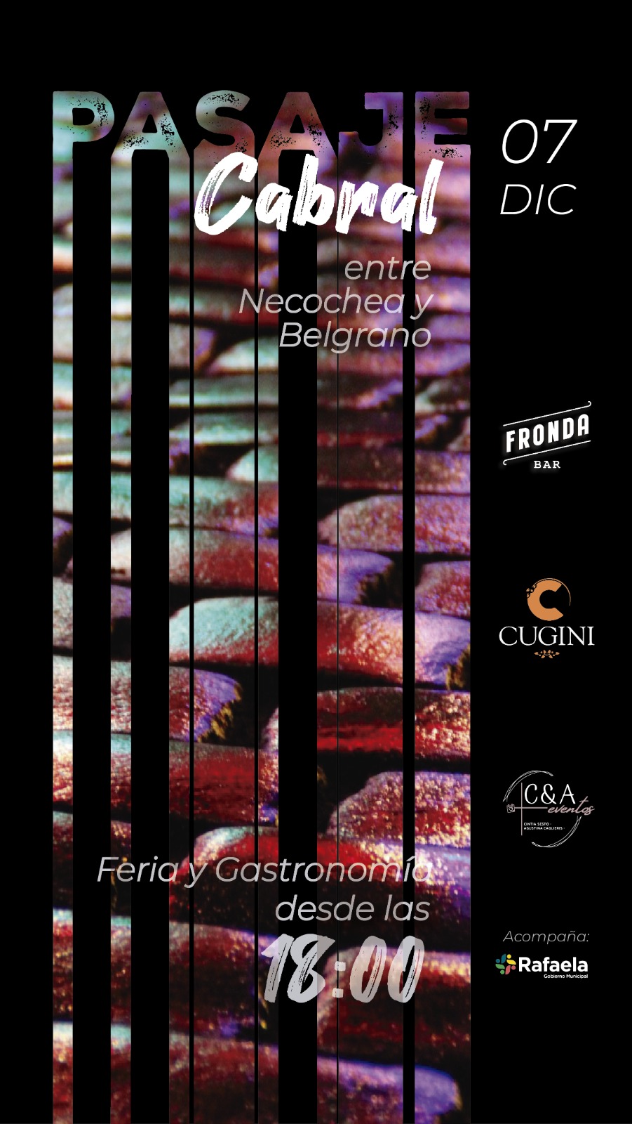 En este marco, el sábado 7 de diciembre, desde las 18:00, en la intersección de Necochea y Belgrano, se realizará Pasaje Cabral, un evento que incluye gastronomía, música y feria.