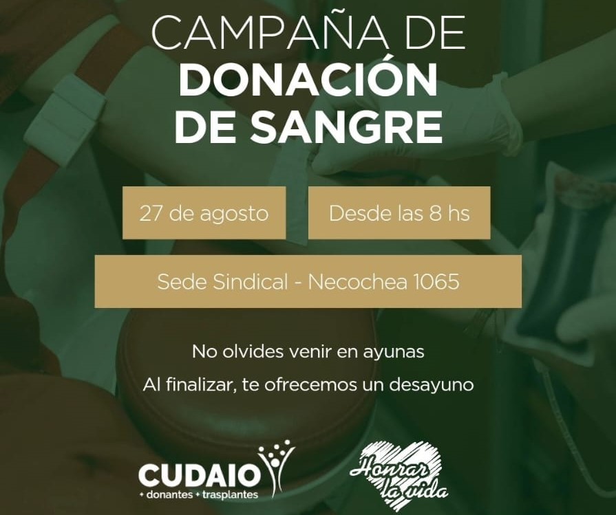 El objetivo de la campaña solidaria, que organizan en forma conjunta el CUDAIO, el Sindicato de Luz y Fuerza y la organización no gubernamental rafaelina Honrar la Vida, tiene como objetivo garantizar el abastecimiento de sangre para quienes más lo necesitan.