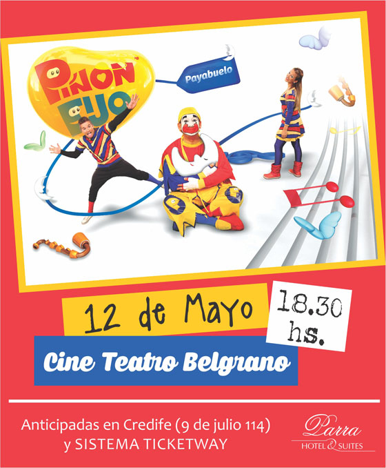 Este viernes 12 de mayo a las 18:30 vuelve Piñón Fijo a Rafaela con su espectáculo "Payabuelo" para presentarse en el Cine Teatro Belgrano. Las entradas anticipadas en Credifé (9 de Julio 114) de lunes a viernes de 8 a 12 o de 16 a 20 horas, o en el sistema de www.ticketway.com.ar.