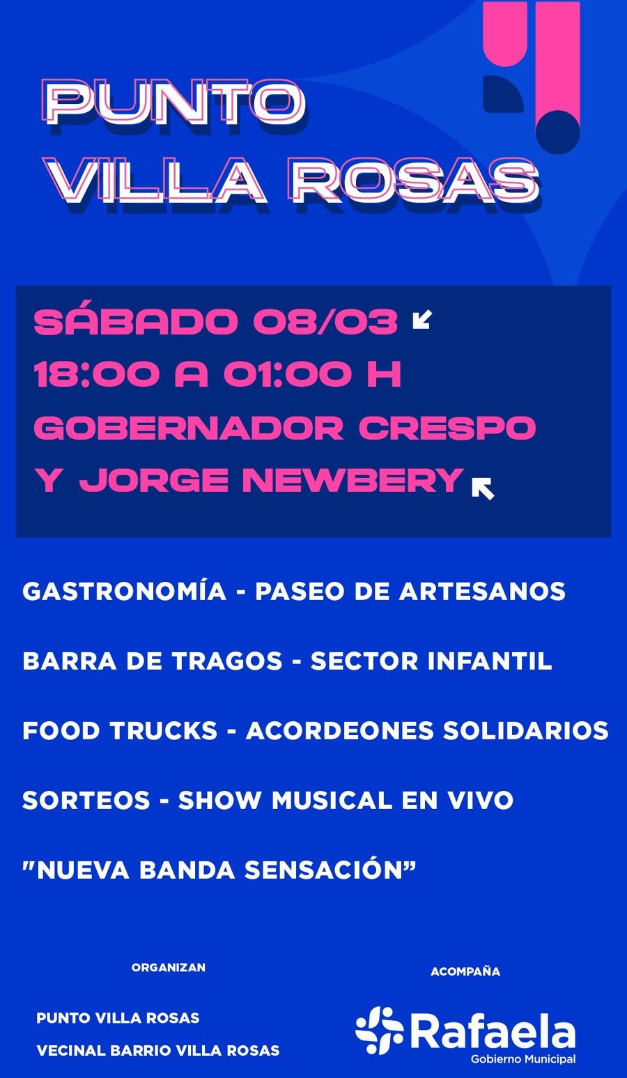 Este sábado 8 de marzo, el corazón del Villa Rosas se vestirá de fiesta con la inauguración de "Punto Villa Rosas", un evento que reunirá a artesanos, música en vivo, espectáculos infantiles y una celebración especial del Día de la Mujer.