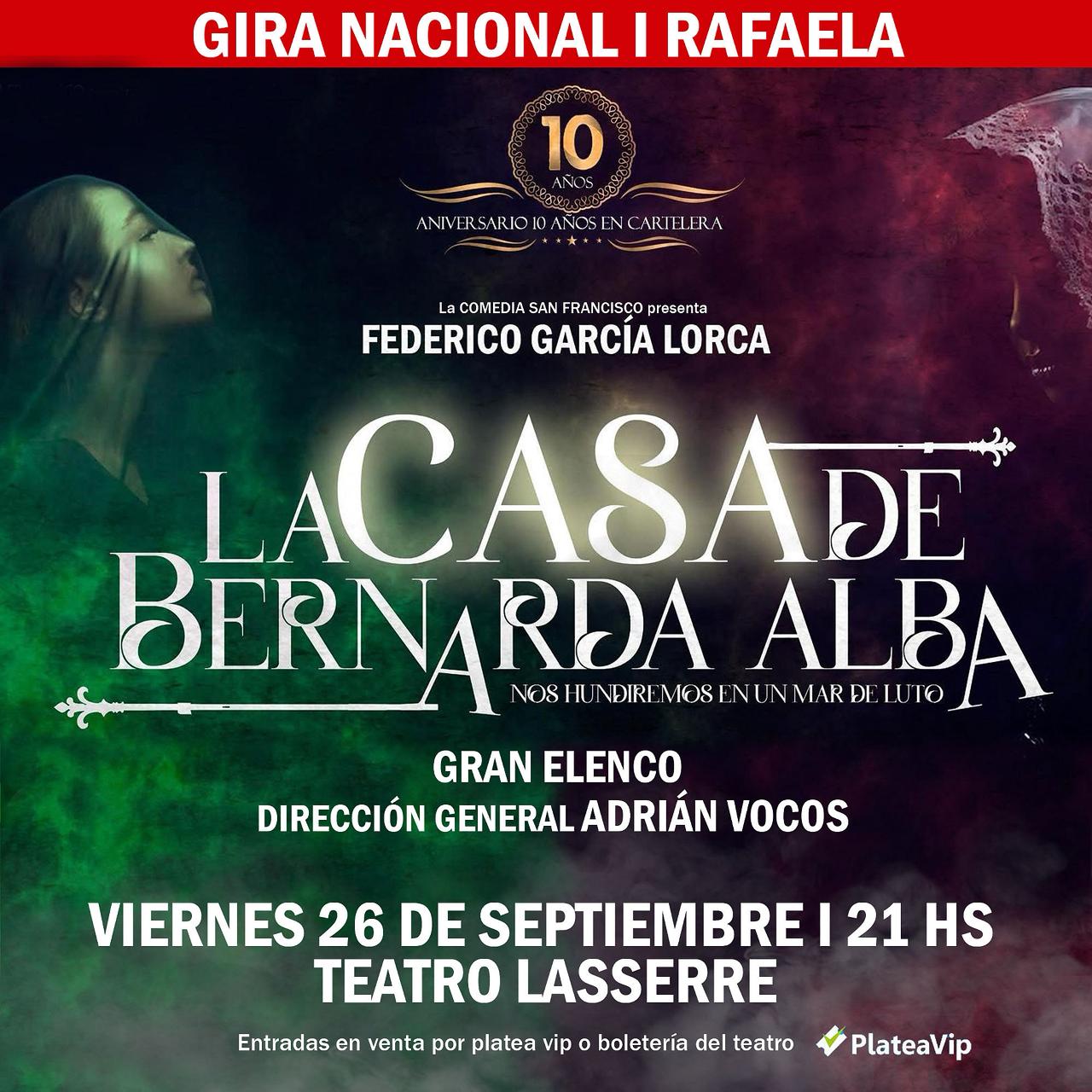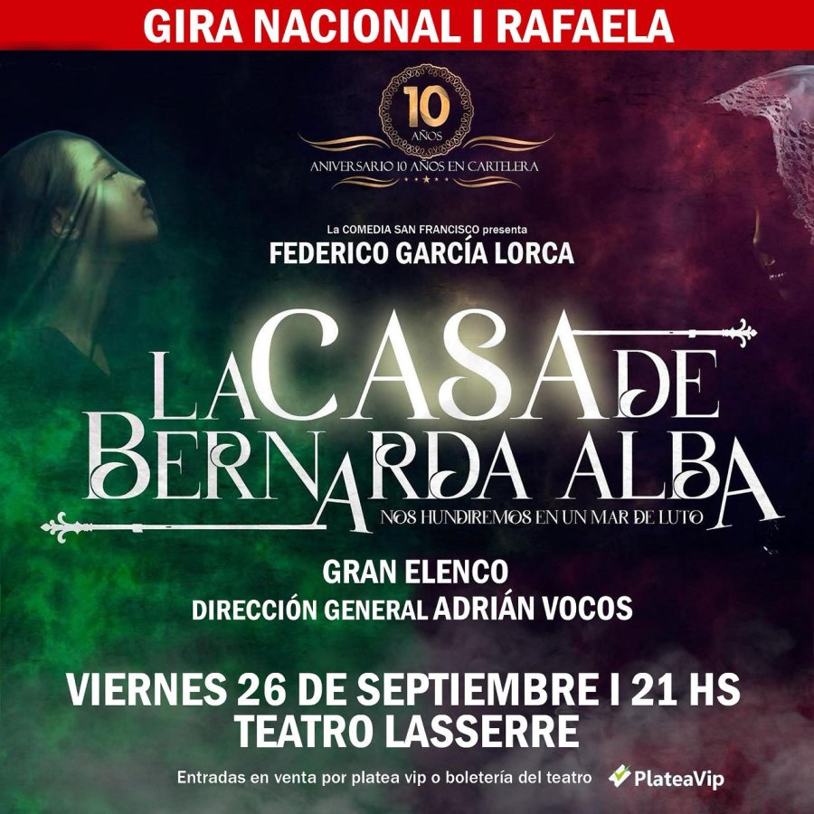 En el marco de su Gira Nacional 2025 y celebrando 11 años ininterrumpidos en cartel, llega a Rafaela una de las obras más emblemáticas y poderosas del teatro universal: “La Casa de Bernarda Alba”, del reconocido dramaturgo español Federico García Lorca. La misma se presentará el viernes 26 de septiembre a las 21:00 en el Teatro Lasserre.