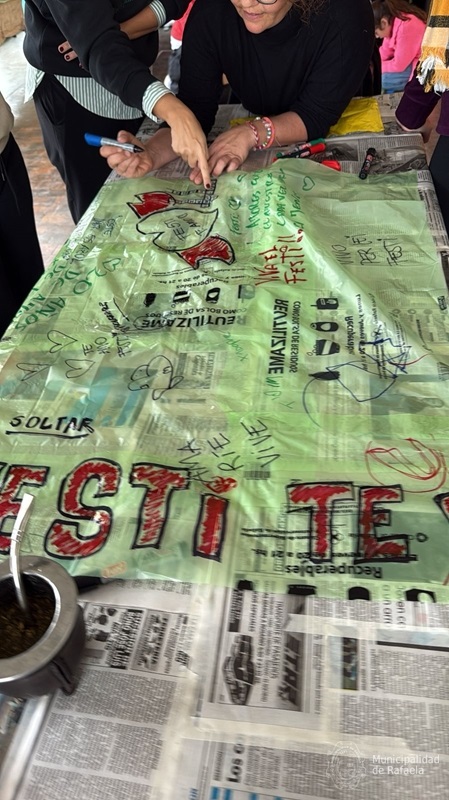 La comunidad aún está a tiempo de sumarse a esta propuesta. En tal sentido, hasta el jueves 27 de junio, se recibirán paños confeccionados con bolsas plásticas. Deben medir 100 ×100 cm, estar hechos de bolsas plásticas, unidos con cinta ancha de embalar por un solo lado y sin plegar ni doblar. Pueden estar realizados de cualquier tipo de bolsas, aunque en esta instancia se agradecen paños totalmente negros o totalmente transparentes (sin intervenir). Los paños se entregan en San Martín 547 (Área Cultura), de lunes a viernes, de 7 h a 13 h.