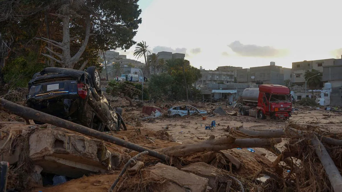 La tormenta Daniel golpeó la ciudad de Derna, de unos 100.000 habitantes, el 10 de septiembre provocando el colapso de dos presas situadas en el río Wadi Derna. El colosal caudal arrasó con edificios y arrastró a personas hasta el mar.