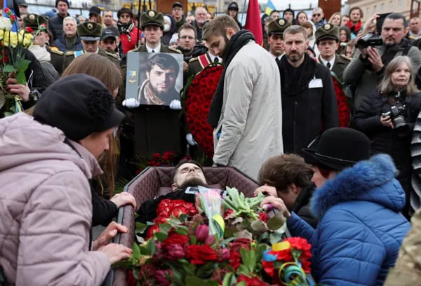 El féretro del soldado fallecido el pasado 7 de marzo en la región de Donetsk, en el este de Ucrania, fue llevado luego a la Plaza de la Independencia de Kiev. Allí, continuó la ceremonia ante miles de personas, incluyendo a funcionarios del Gobierno y al comandante en jefe de las Fuerzas Armadas ucranianas, Valerii Zaluzhnyi, entre otros altos mandos militares.