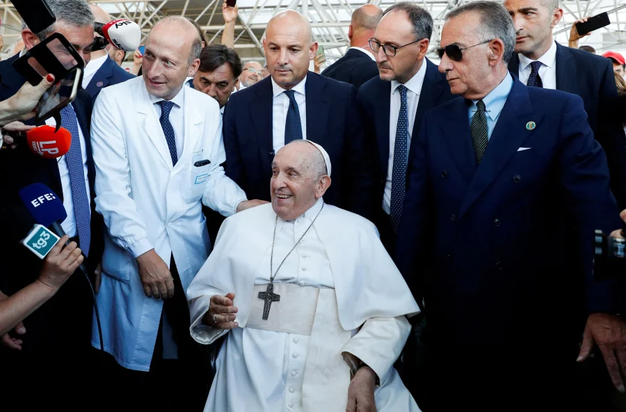 Al llegar a una puerta del Vaticano, bajó brevemente del automóvil y, de pie durante un minuto, dio las gracias individualmente a los miembros de la escolta policial italiana. Alfieri dijo que el Papa estaba lo suficientemente bien como para viajar. Francisco viajará a Portugal a principios de agosto y a Mongolia a finales de ese mes.