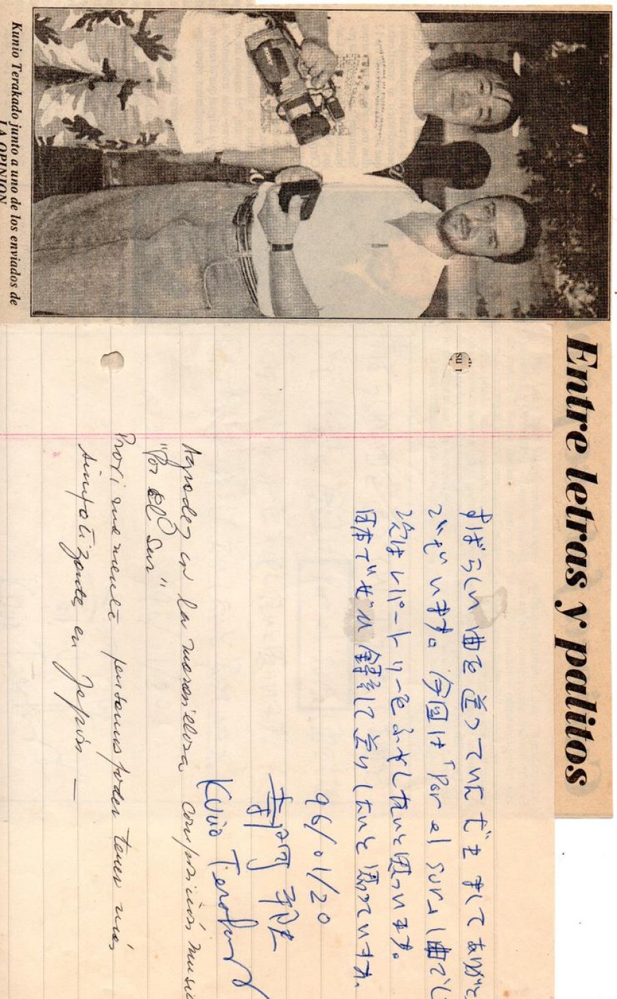 Agradezco la maravillosa composición musical "Por el Sur". Próximamente pensamos tener más simpatizantes en Japón. Kunio Terakado. 20-01-96