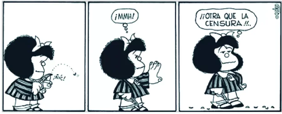 - - Creo que fue por aburrimiento mío de no repetirme, porque la tira inicial era Mafalda con su papá y su mamá, entonces el mecanismo era que Mafalda leía algo en el diario o lo veía por televisión e iba a preguntarle a los padres por qué eso. Pero claro, a la tira número treinta yo estaba cansado…