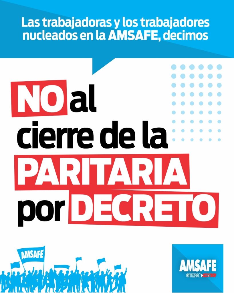 Agrandar imagen NO AL CIERRE DE PARITARIAS. Amsafe se mostró en contra la decisión unilateral y autoritaria del gobierno de la provincia de cerrar las paritarias por decreto.