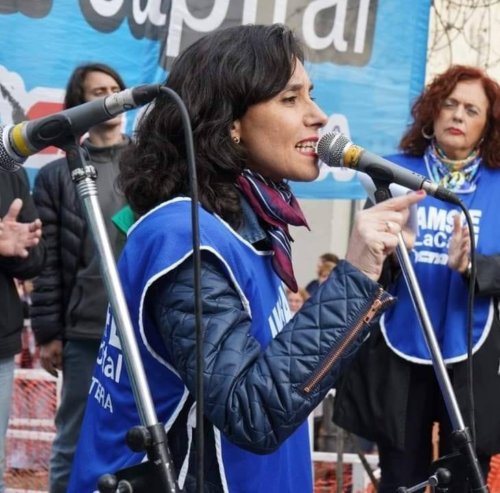 MARIA JOSE MARANO. La secretaria general de Amsafe La Capital estuvo presente este miércoles en la jornada de protesta de los docentes públicos santafesinos. Crédito: FOTO WEB