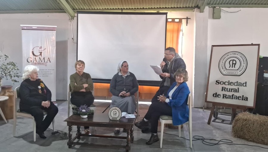 Frente al público se ubicaron Beatriz Borgogno de Zenklussen y Betty Podio en representación de GAMA, la Hermana Adriana por el Hogar Don Orione y Silvia Gramaglia por el Voluntariado del Hospital Jaime Ferré. Ellas, guiadas por Juanjo Górgona como presentador del evento, charlaron sobre la historia de cada entidad, el contexto socioecómico en el que surgieron, el homenaje a sus fundadores y las motivaciones que sostienen vivo el espíritu de trabajo y colaboración.