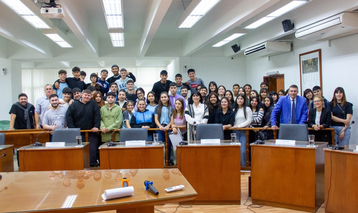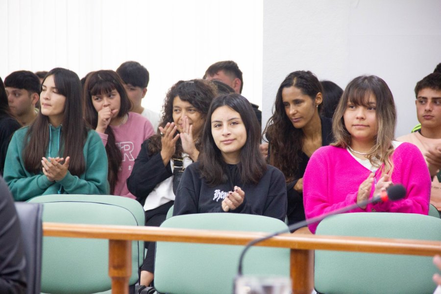 La sala del sexto piso del edificio municipal, donde funciona el Concejo, estuvo repleta de profesores y estudiantes de escuelas secundarias rafaelinas que con ansias esperaron este día para defender los proyectos que elaboraron en el aula. Participaron en esta oportunidad las escuelas "Alicia Cattaneo", "Mario Vecchioli" (turno noche) y "Luis Alberto Spinetta", en este caso apadrinadas por los concejales Juan Senn, Ceferino Mondino y Alejandra Sagardoy respectivamente.