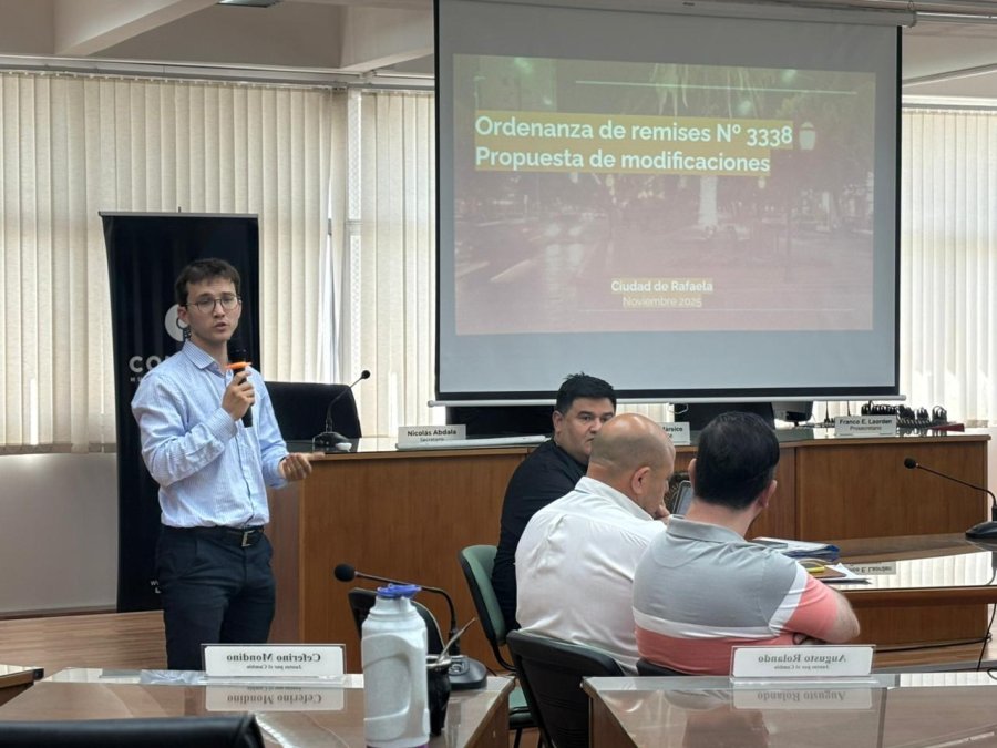 Este lunes por la mañana, la sala de sesiones del Concejo Municipal de Rafaela fue escenario de una reunión clave entre los concejales locales y representantes del sector de remises —tanto empresarios como choferes— para avanzar en la redacción consensuada de una nueva ordenanza que regule el servicio de transporte de pasajeros en la ciudad. La iniciativa contempla, por primera vez, la inclusión de las plataformas digitales de viajes como DiDi, cuya actividad viene generando fuertes tensiones dentro del rubro.