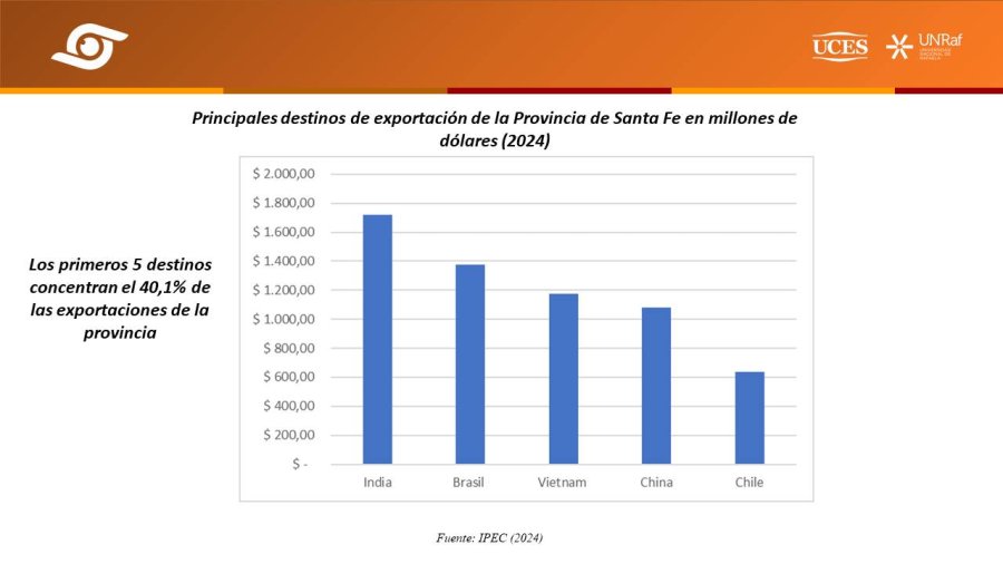 - India, Brasil, Vietnam, China y Chile son los principales destinos de exportación.