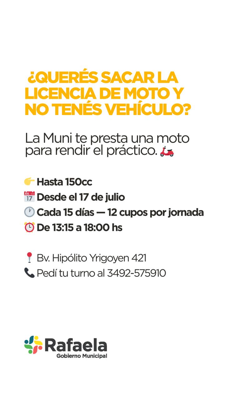 La Municipalidad de Rafaela lanza un nuevo servicio que permitirá rendir el examen práctico de motocicletas (hasta 150cc) usando una moto provista por el Estado local.