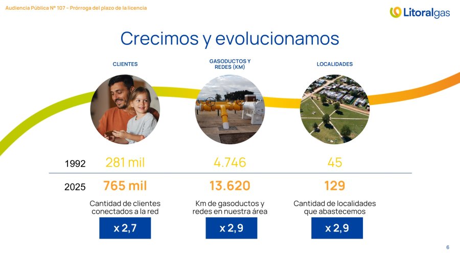 Desde el inicio de su operación en 1992, Litoralgas ha consolidado una infraestructura integrada hoy por de 13.600 kilómetros de redes y gasoductos, atendiendo a más de 765.000 usuarios en 129 localidades. Actualmente, el servicio llega a 2,5 millones de personas en la región, representando el 8% de los usuarios del país y el 11% del volumen de gas distribuido.