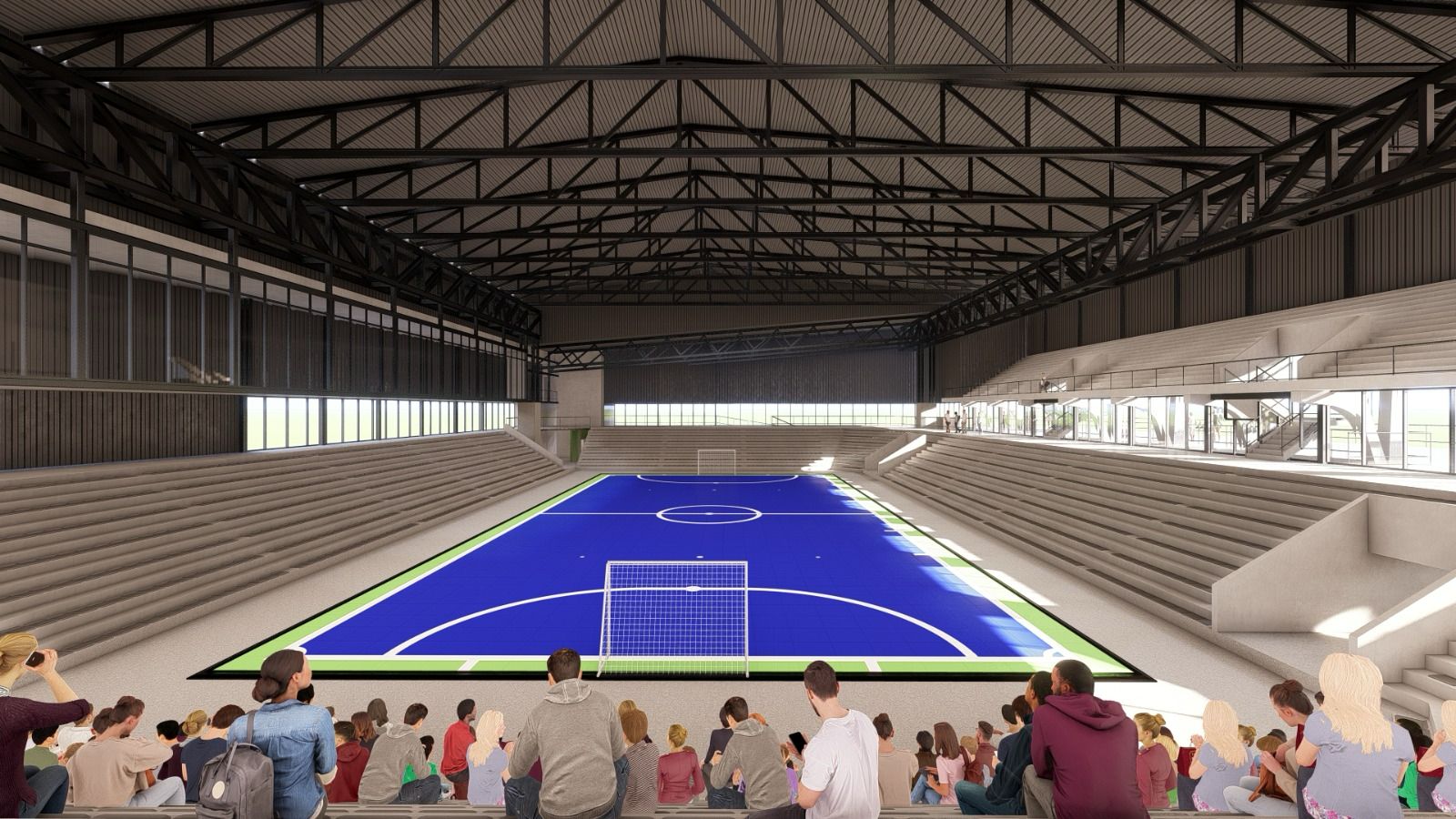 Como espacio libre para el desarrollo de las actividades, se prevé un espacio de 3.500 m2 dispuesto para que, en formato formato flexible, se puedan instalar distintas disciplinas, como a su vez instalaciones provisorias para espectadores. El aforo total previsto es de 6.000 personas, 1.000 sentadas en tribunas y 5.000 de máxima distribuidas en el espacio libre.