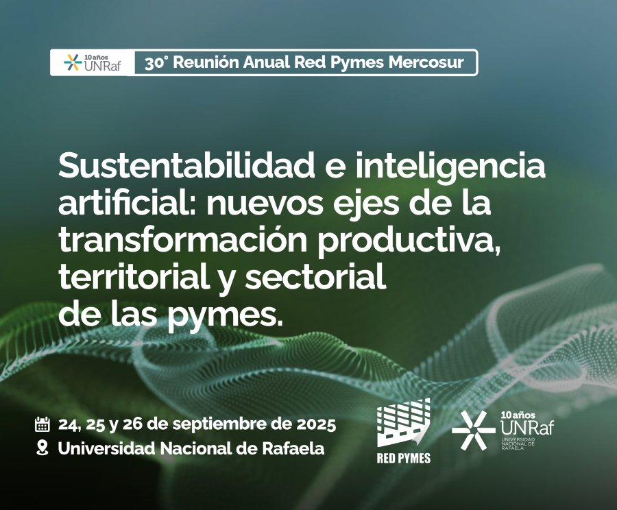 La Universidad Nacional de Rafaela (UNRaf) será sede de un evento académico de referencia en el estudio y desarrollo del sector de la pequeña y mediana empresa. Desde el 24 y hasta el 26 de septiembre tendrá lugar en el Campus de la UNRaf la 30° Reunión anual Red PyMEs Mercosur.