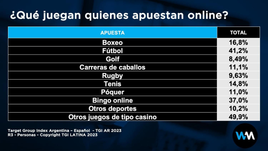 En Argentina operan específicamente 16. Las tres de mayor presencia en concepto de publicidad fueron en 2023: Betsson (24.784 segundos), BetWarrior (24.010 segundos) y B Play (10.558 segundos).