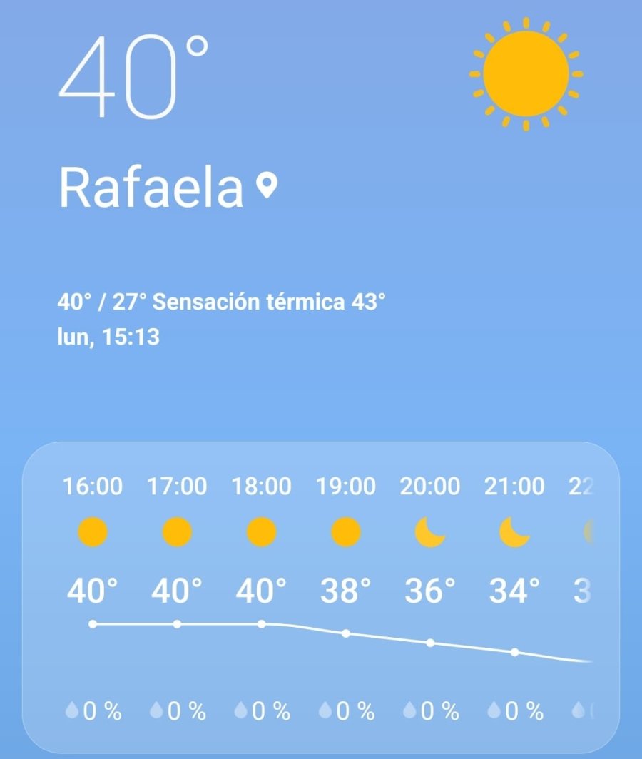 Rafaela, este lunes, fue nuevamente un horno tal como el viernes, el sábado y el domingo. La temperatura superó los 40 grados en tanto la sensación térmica se ubicó en 43°.