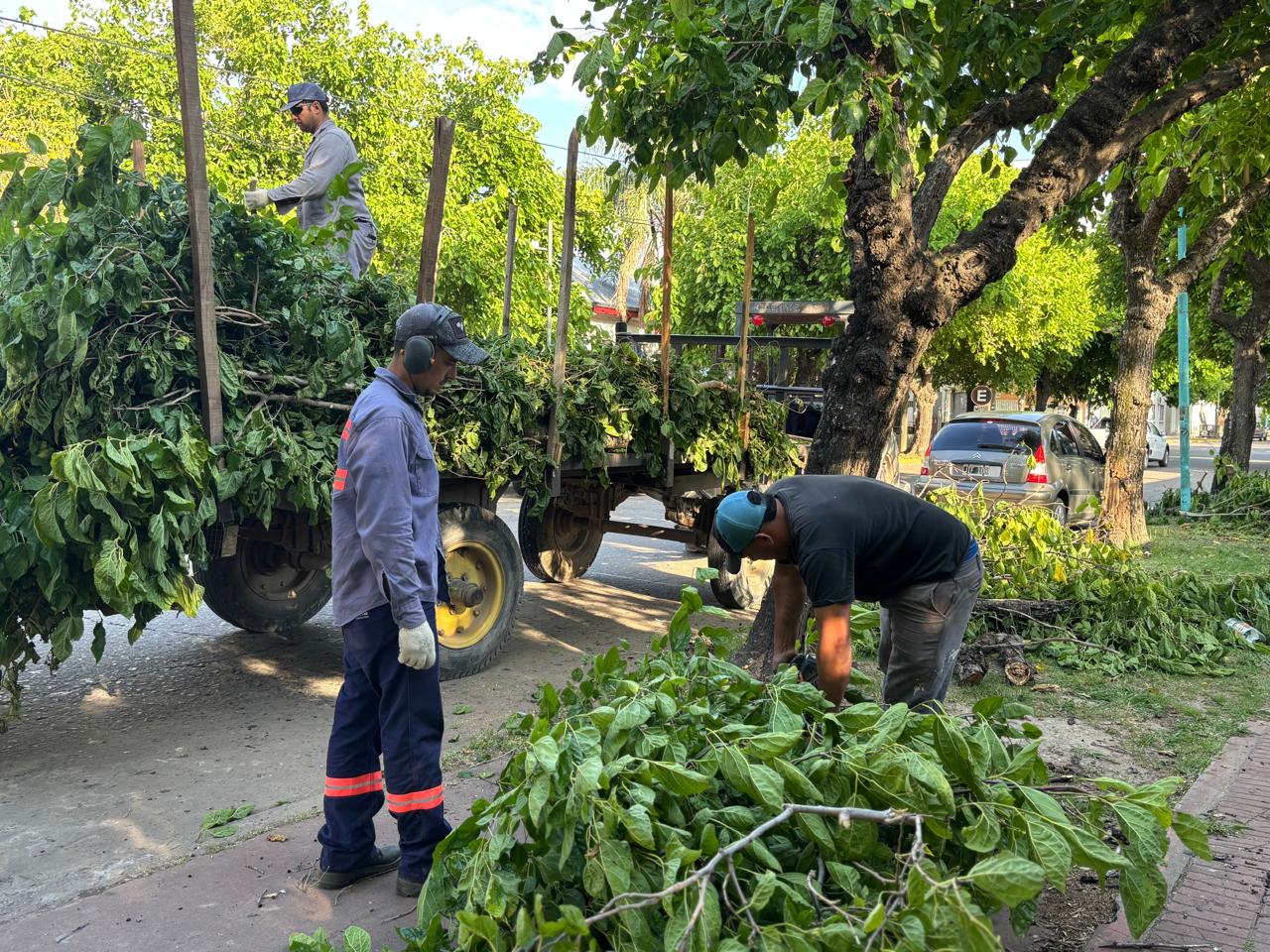Estas acciones se ejecutan de manera programada y también en respuesta a reclamos, priorizando los sectores donde se registran problemas por exceso de ramas, obstrucción de luminarias o caída de frutos sobre veredas y calzadas.