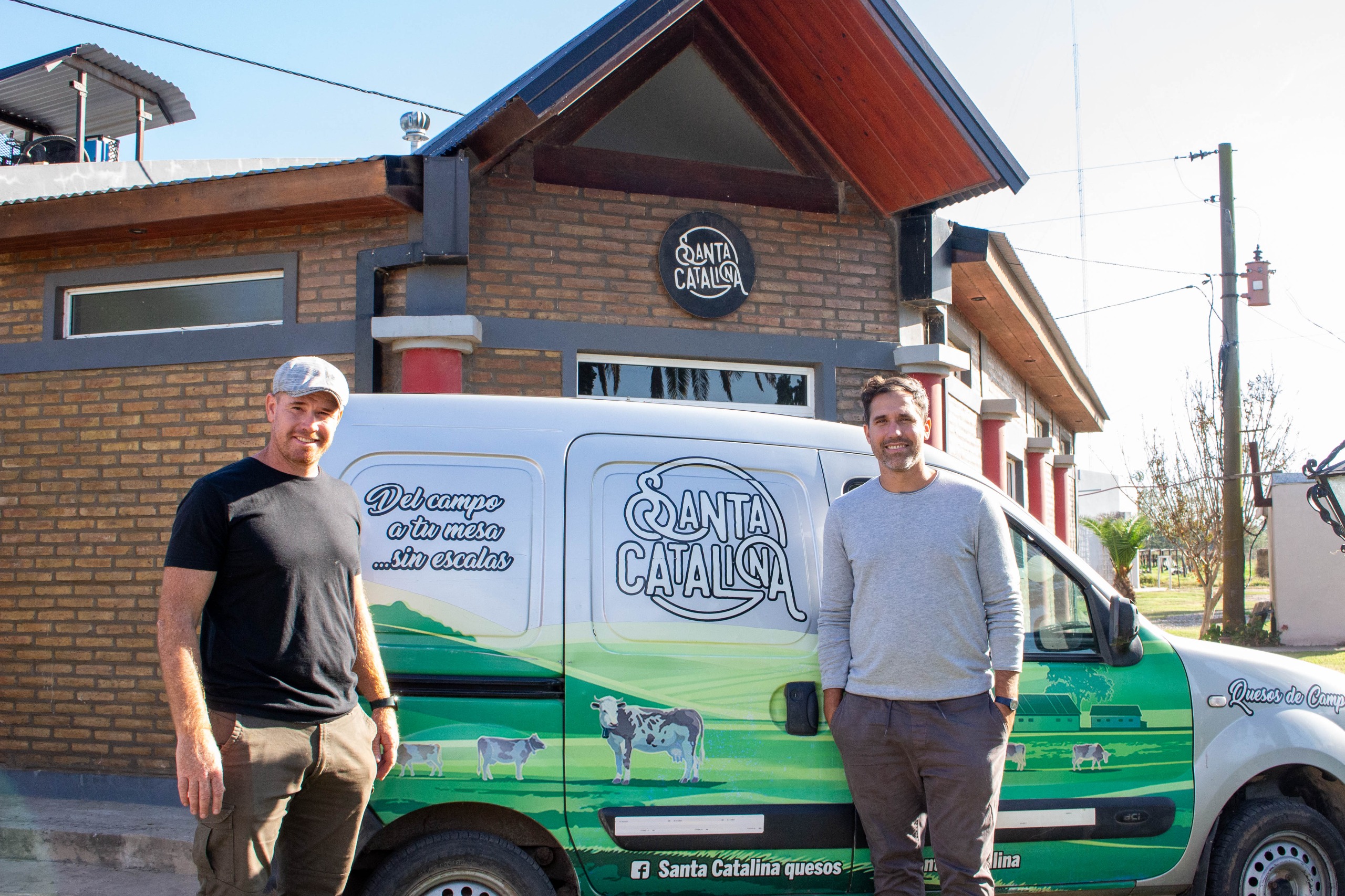Llega el turno de los maestros queseros, Franco y su mentor Gonzalo, quienes toman la producción directamente desde el tambo (a futuro estará conectada por cañería especial) a escasos metros de donde está la pequeña fábrica de quesos artesanales con marca propia, gracias al nombre acuñado allá lejos en el árbol genealógico, de quien además de regalarles el ejemplo, les legara una bonita sacra identidad para honrar semejantes añejados sabores con toques de modernidad: Quesos Santa Catalina.