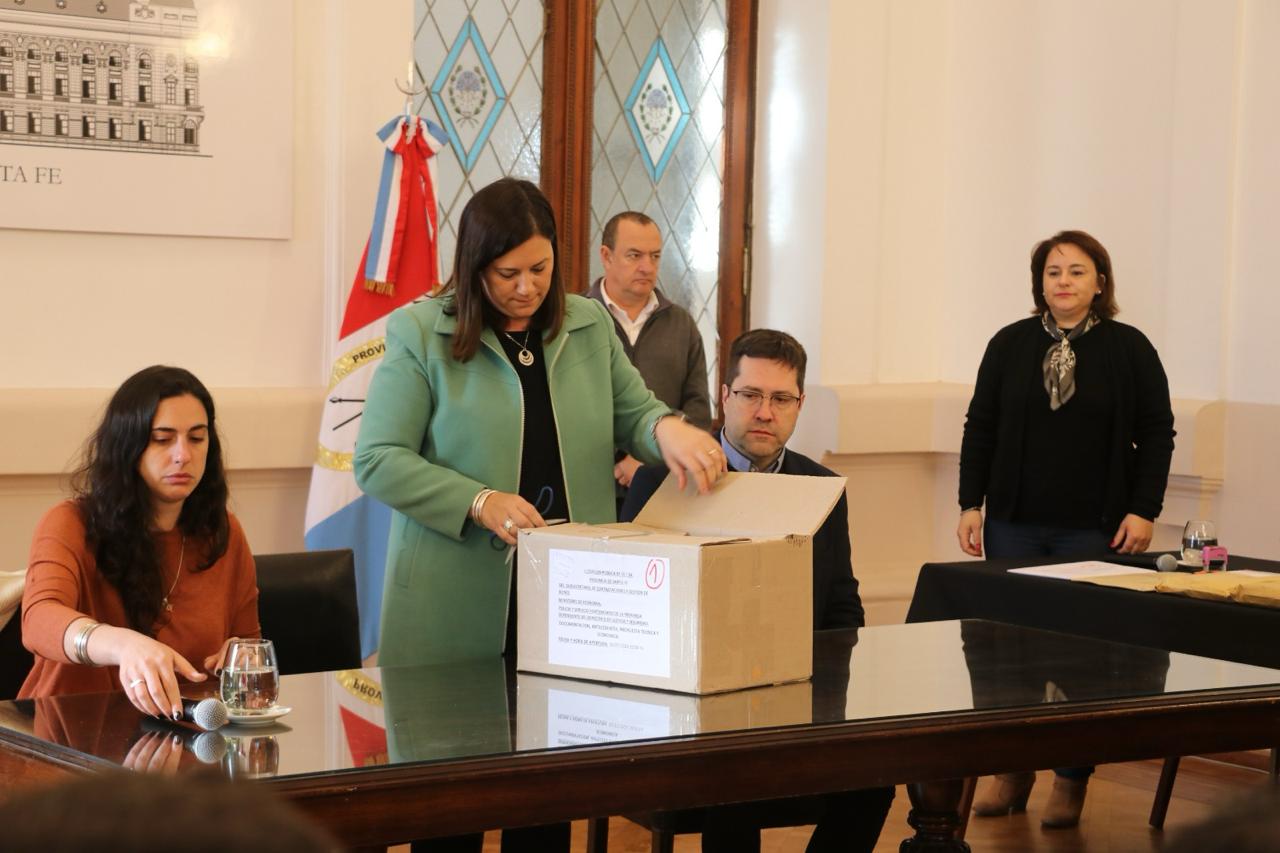 El acto que se realizó en el Salón Blanco de Casa de Gobierno, en la ciudad de Santa Fe, contó con la participación de las secretarias de Coordinación Técnica y Administración Financiera del Ministerio de Justicia y Seguridad de la Provincia, Georgina Orciani; de Asuntos Penales, Lucía Masneri Calderari y de Gestión Institucional, Virginia Coudannes; junto al subsecretario de Tecnología y Equipamiento, Armando Faraoni; entre otros.