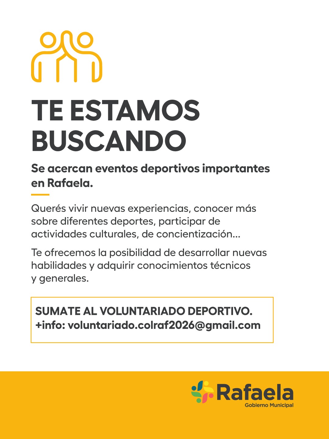 La ciudad de Rafaela abrió la inscripción al Voluntariado Deportivo, una propuesta dirigida a personas mayores de 18 años que deseen ser protagonistas de los eventos deportivos y culturales más importantes que se vienen en la ciudad.