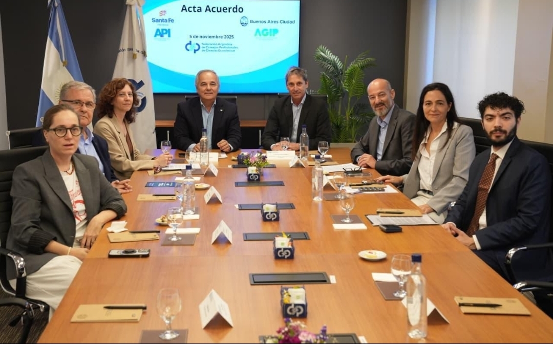 La firma del acuerdo entre la AGIP y API tuvo lugar esta semana en Ciudad Autónoma de Buenos Aires, en la sede de la Federación Argentina de Consejos Profesionales de Ciencias Económicas, con la presencia del subsecretario de Ingresos Públicos de Santa Fe, Florencio Galíndez; Gerardo Rico, presidente del Consejo Profesional de Ciencias Económicas de Santa Fe; Soledad Amione, subdirectora de Relaciones Institucionales y Cultura Tributaria de AGIP; Cecilia Priego, subdirectora General de Relaciones Institucionales y Comunicación; y Dionisio Mulone, del área de Relaciones Institucionales de esa entidad.