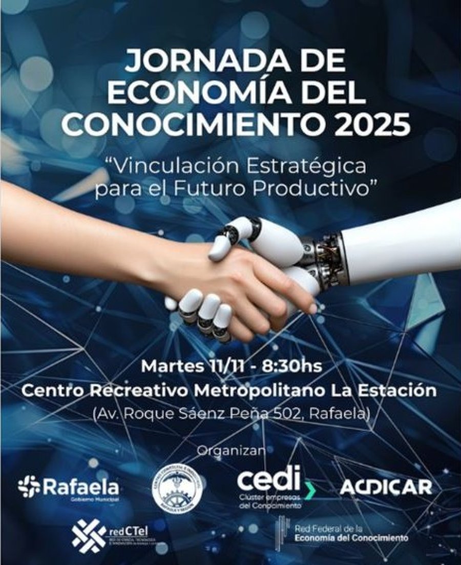 El Centro Recreativo Metropolitano La Estación será sede este martes desde las 8:30 de un encuentro clave para el desarrollo del sector tecnológico y productivo: la Jornada de Economía del Conocimiento. La iniciativa, que apunta a convertirse en un espacio de actualización, inspiración y conexión y que se llevará a cabo bajo el lema “Vinculación Estratégica para el Futuro Productivo”, es impulsada por el Clúster CEDI, la Municipalidad de Rafaela, el CCIRR, la Asociación Civil para el Desarrollo y la Innovación Competitiva Agencia Rafaela (ACDICAR), la Red de Ciencia y Tecnología e Innovación de Rafaela y la Región (RedCTeI) y Red Federal de la Economía del Conocimiento.