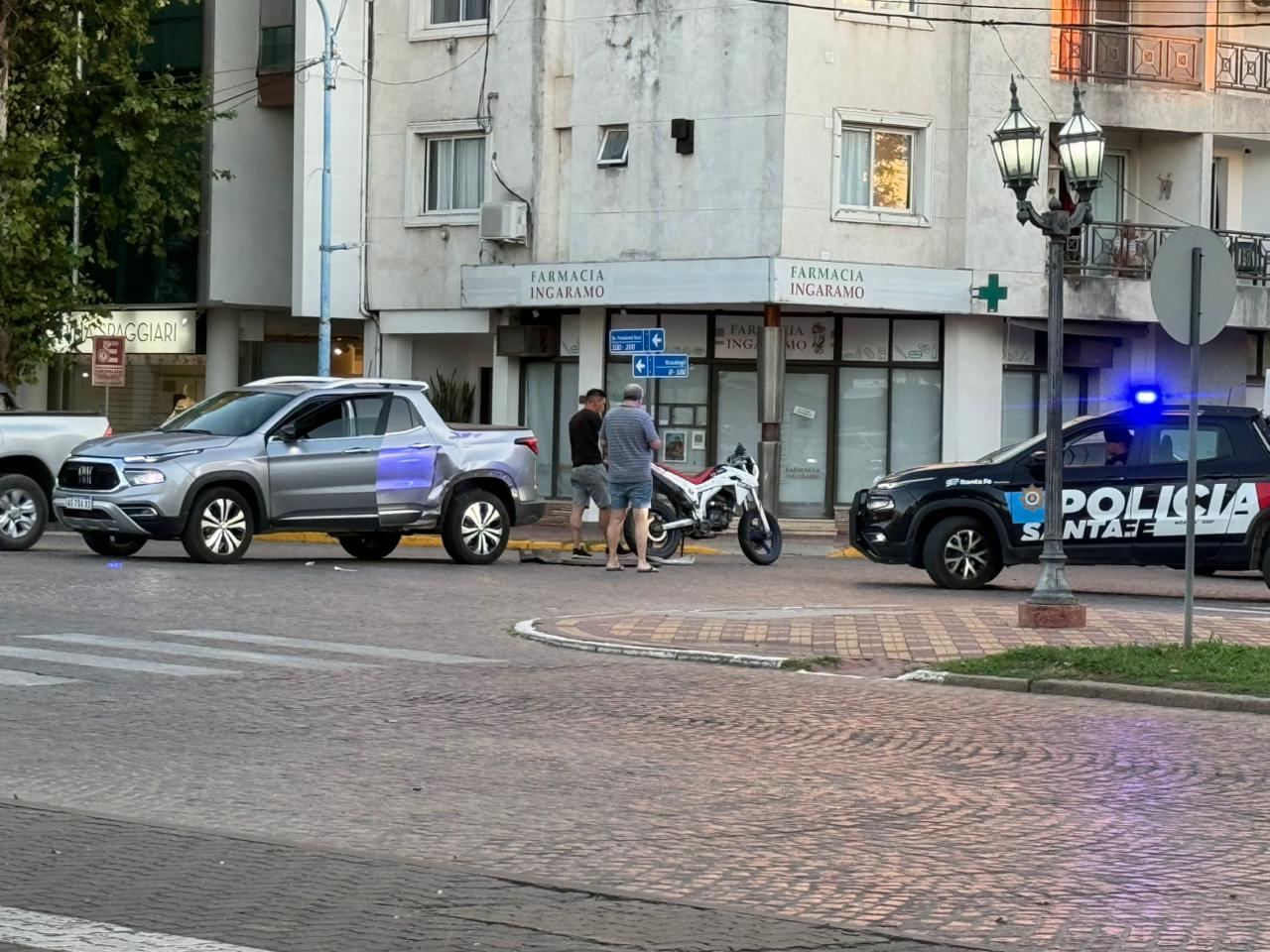 Un siniestro vial se registró en la tarde de este sábado en la esquina de bulevar Presidente Roca e Ituzaingó, en la ciudad de Rafaela, y fue protagonizado por una camioneta utilitaria y una motocicleta. Afortunadamente, no se reportaron personas lesionadas, aunque sí se produjeron daños materiales.