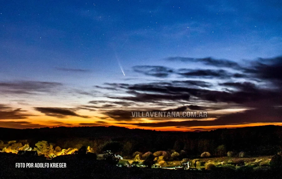 El astrónomo Rubén Krieger capturó imágenes del Cometa del Siglo el sábado 28 de septiembre a las 5.44 de la mañana en Villa Ventana. En las mismas se puede ver al cometa en el horizonte de la Sierras de la Ventana dejando su estela brillante en el cielo.