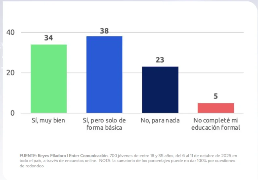 Además, un 38% piensa que la educación formal los prearó “de forma básica” para instersarse en el mercado laboral.