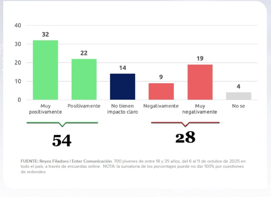 El 54% cree que las medidas tomadas por el Presidente tienen un impacto positivo, y destaca la presencia masculina (66%). Del lado contrario, un 28% afirma que el resultado fue "negativo" o "muy negativo".