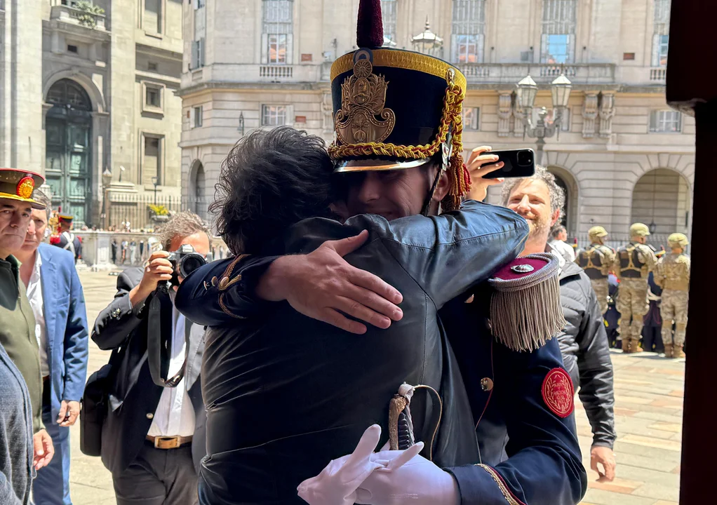 El mandatario nacional compartió un abrazo con los granaderos, donde se lo vio muy contento y emocionado.