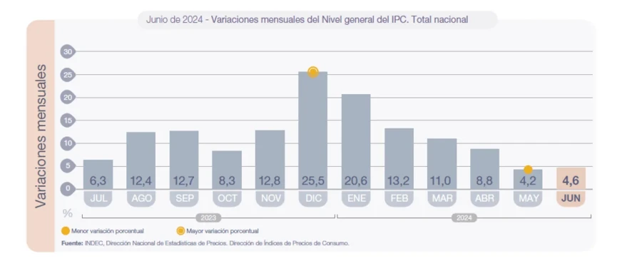 techo del 5 por ciento, luego de que el Instituto Nacional de Estadísticas y Censos (INDEC) publicara más temprano que el Índice de Precios al Consumir (IPC) de junio fue del 4,6 por ciento.