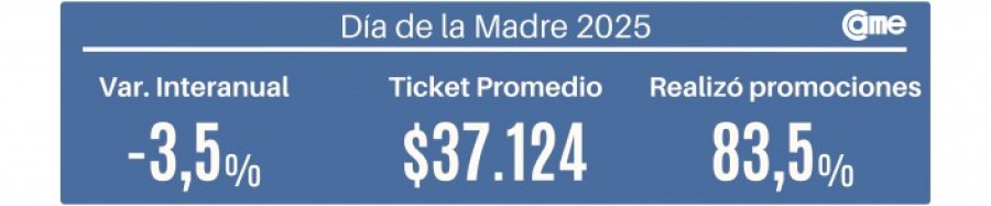 Las ventas en los comercios minoristas pymes durante el Día de la Madre mostraron una retracción del 3,5% frente al mismo período del año anterior, medidas a precios constantes, según la Confederación Argentina de la Mediana Empresa (CAME). Se trata del cuarto descenso interanual consecutivo, asociado al deterioro del poder de compra de los hogares y a una fecha que, en la actualidad, no logra impulsar de manera significativa el consumo minorista.
