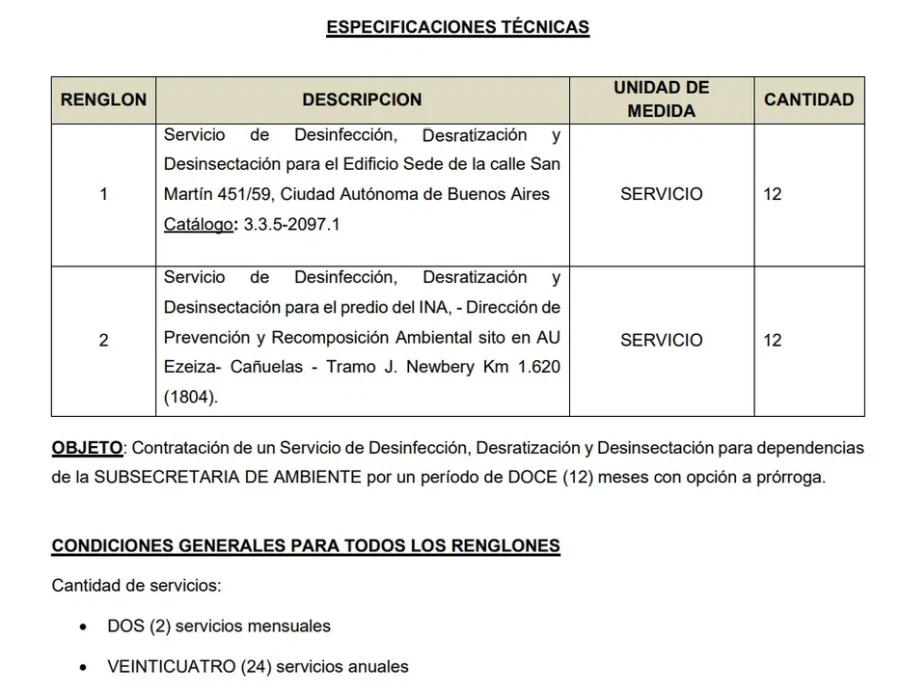 En cuanto a la gestión de plagas, el 8 de noviembre de 2024, la Subsecretaría solicitó la contratación de un servicio de desinfección, desratización y desinsectación para las dependencias del organismo, con un contrato que cubre un año con opción a prórroga. La comisión evaluadora recomendó a dos empresas para el servicio: