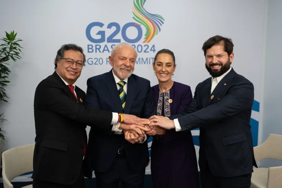 Tampoco se prestó para la fotografía histórica de los representantes de Latinoamérica. Rodearon a Lula da Silva, los presidentes Gustavo Petro (Colombia), Gabriel Boric (Chile), y la reciente electa, Claudia Sheinbaum Pardo (México).