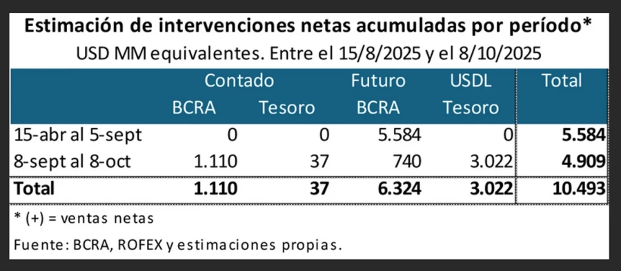 15 de abril al 5 de septiembre: Quantum estima que las intervenciones netas acumuladas fueron por el equivalente a USD 5.854 millones, instrumentadas a través de ventas de contratos de dólar futuro realizadas por el BCRA.