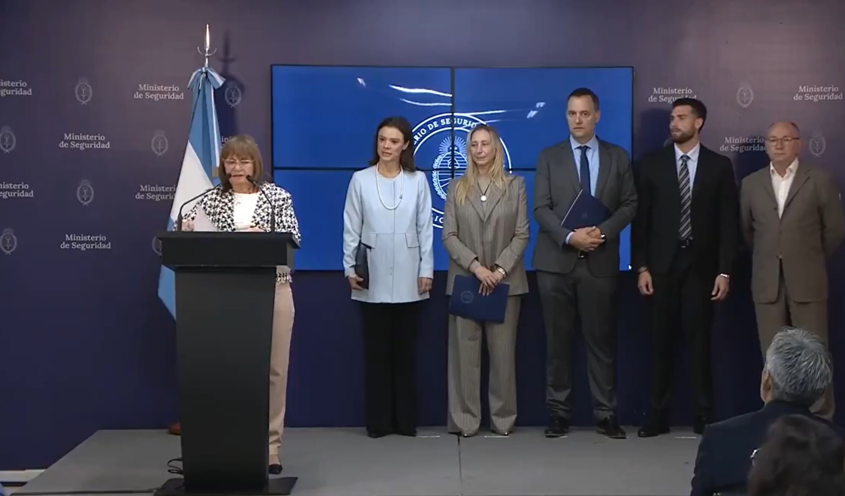 “Para nosotros esto es sumamente importante porque ningún violento que en las canchas argentinas haya cometido algún delito va a poder participar de este evento deportivo”, destacó Bullrich en conferencia de prensa en el Ministerio de Seguridad acompañada por la secretaria General de la Presidencia, Karina Milei, y el vocero presidencial, Manuel Adorni. También participaron del anuncio el director de Seguridad en Eventos Deportivos, Franco Berlín, y la encargada de negocios de los Estados Unidos en la Argentina, Abigail Dressel.