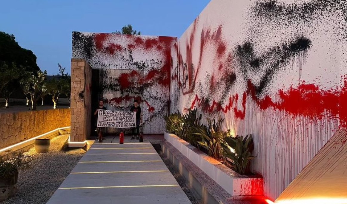 Se trata de integrantes de la agrupación Futuro Vegetal, quienes lograron ingresar a la propiedad y dejaron el siguiente mensaje: “Help the Planet - Eat the Rich - Abolish the Police”' (Ayudar al planeta, comerse a los ricos y abolir la policía).