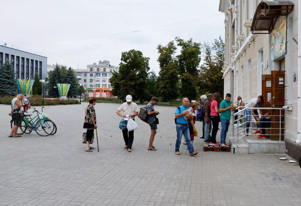 FOTO REUTERS Crédito: GUERRA EN EUROPA. Reparto de ayuda en la localidad de Bajmut, en la zona controlada por Ucrania en la provincia de Donetsk.