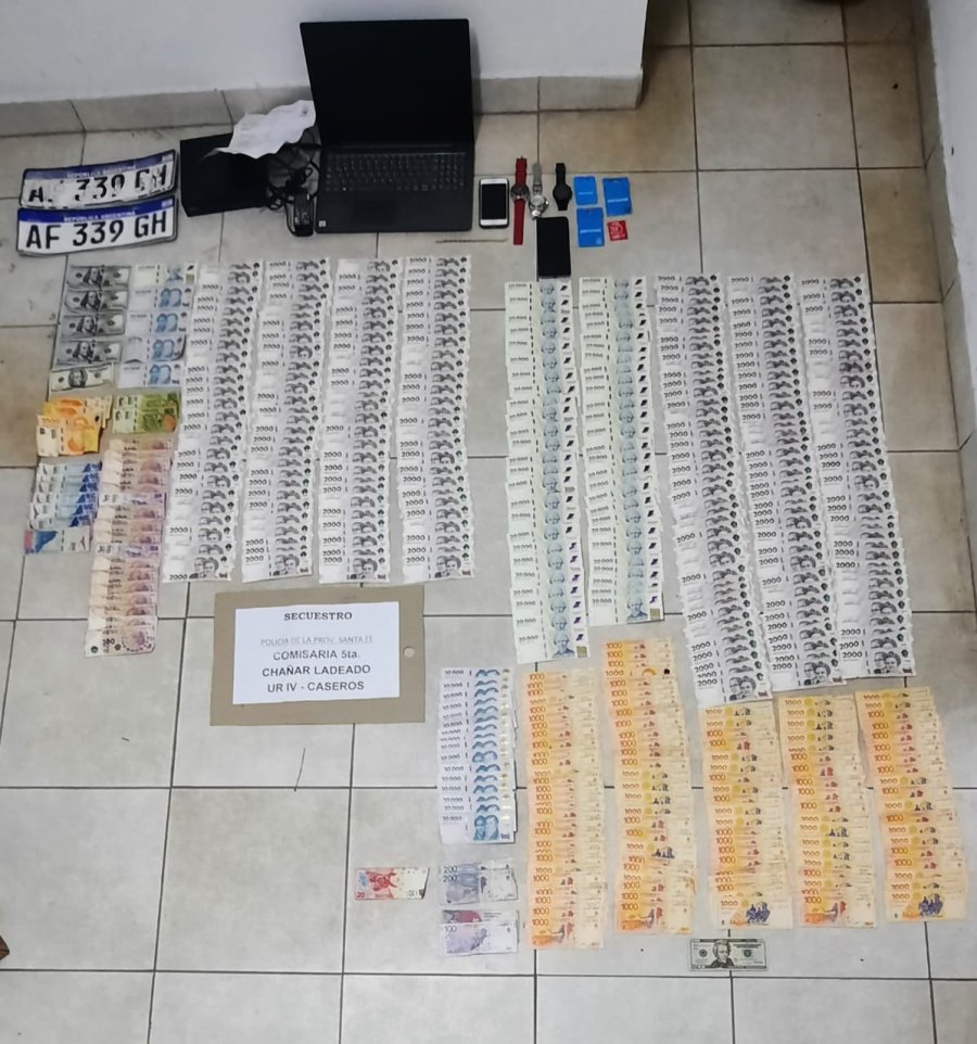 Fue entonces que finalmente se pudo detener a Jonatan David G., de 31 años de edad, quien portaba $1.552.620; y posteriormente a Santiago D. (28); y Matías José B. (27), todos domiciliados en Cañada de Gómez.