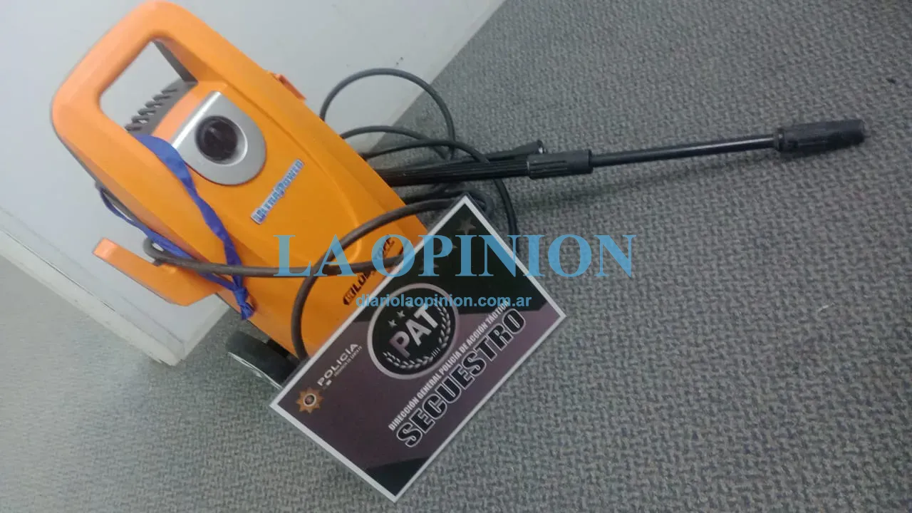 El citado, transportaba una hidrolavadora -con la pistola para el chorro de agua-, que descartó al momento de intentar una huída del mencionado lugar, elemento que confesó había robado desde una vivienda sita en la antes referida arteria rafaelina, sin precisar mayores detalles.