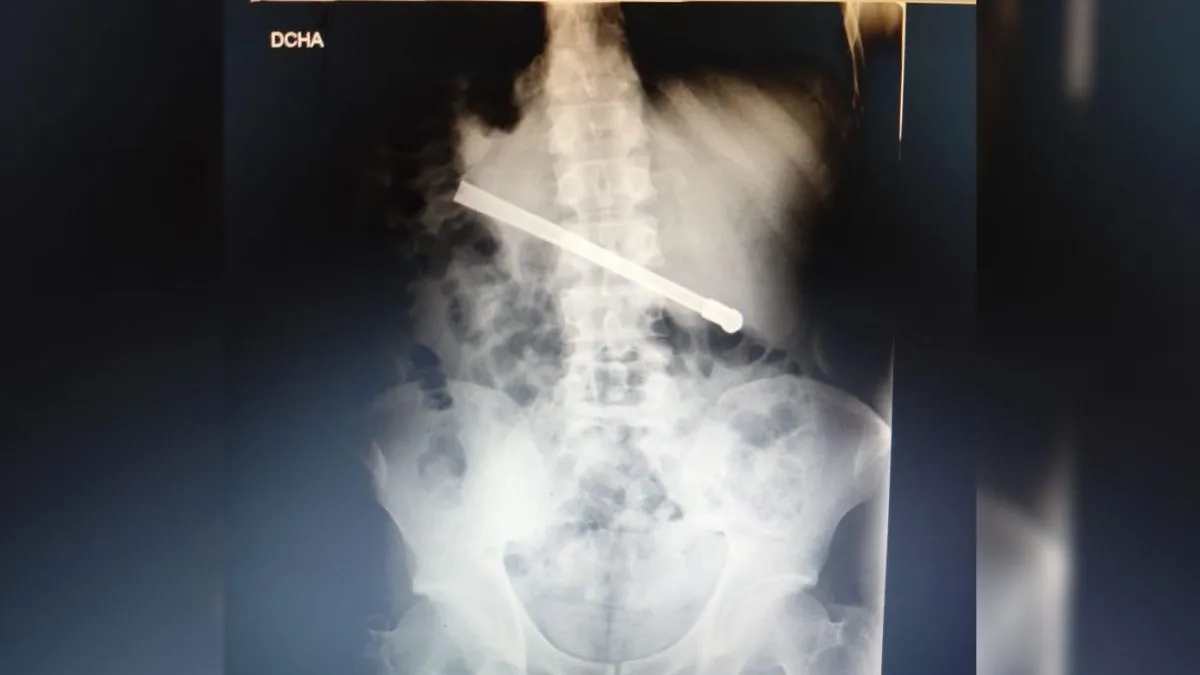 Allí, una radiografía mostró que tenía una bombilla metálica en el estómago.