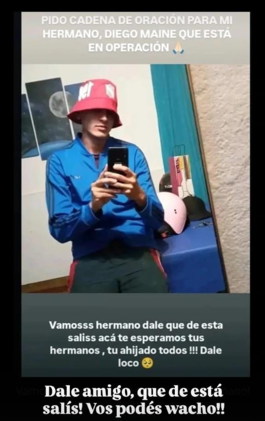 En este marco, familiares de uno de los heridos, identificado como Diego Maine, pidieron a través de publicaciones en redes sociales una cadena de oración. "Vamos hermano, dale que de esta salís, te esperamos tus hermanos, tu ahijado, todos!! Dale loco!" señala uno de los mensajes.