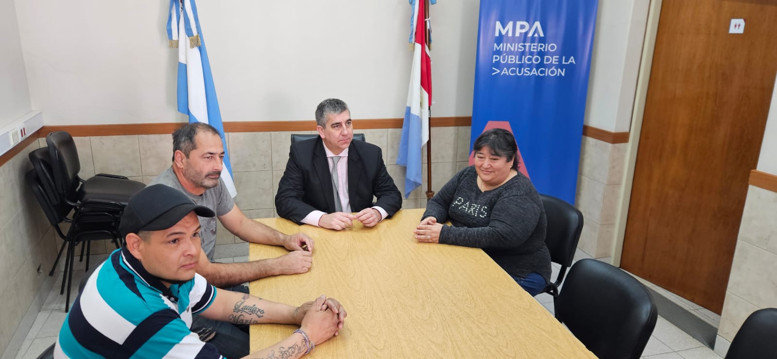De la reunión participaron además del Fiscal Regional Carlos María Vottero y el Secretario Regional Mario Miretti, los representantes barriales Ramona Ramallo (barrio Virgen del Rosario), Maximiliano Orellana (barrio Mora) y Daniel Deralmo (barrio Martín Fierro), informó la Fiscalía Regional 5.