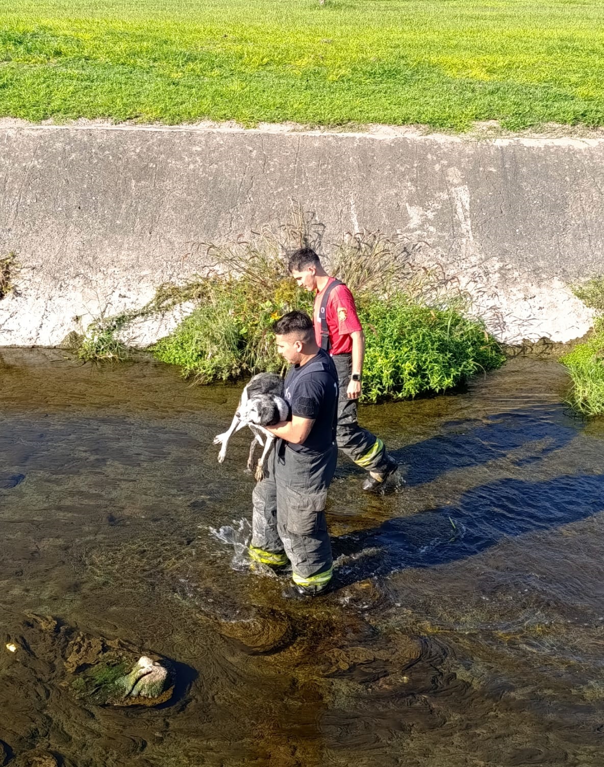 En acción conjunta se logró rescatar a un perro caído en el canal sur
